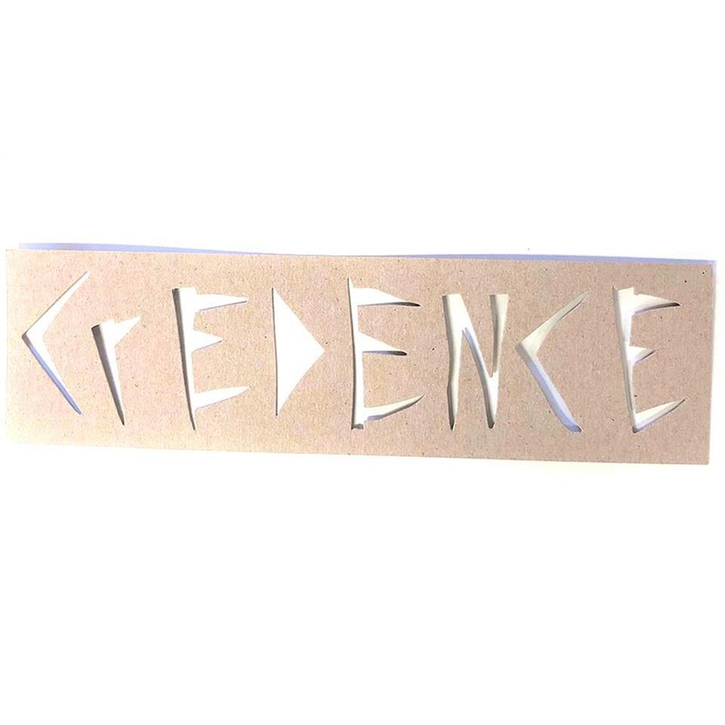 Paper setncil from S&M of the Credence logo found their frames. Measures approx. 9″ wide.
