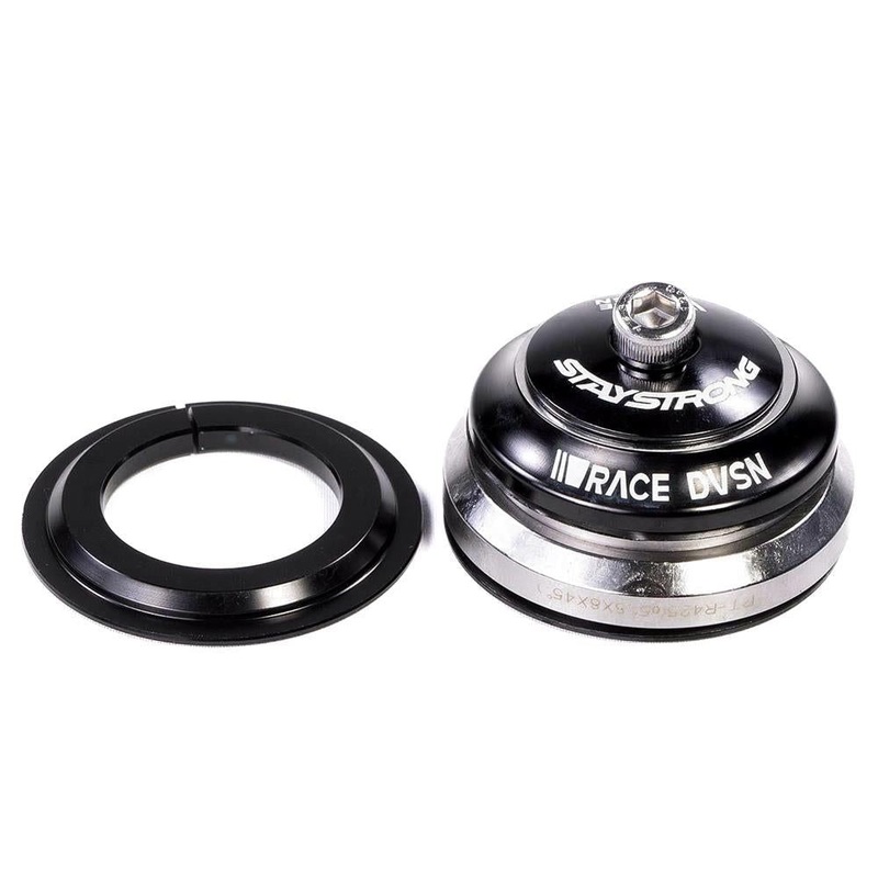 Stay Strong Race DVSN Tapered sealed AC bearing headset, 1-1/8th - 1.5 inch. Designed for integrated headset frames (bearings sit directly inside the frame), 1-1/8th inch top and 1.5 inch bottom bearings, Stay Strong Race DVSN branding on top cap and inclu